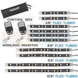 10pc Advanced Red SMD LED Motorcycle Light KitLEDGlow's 10 Piece Advanced Red SMD LED Motorcycle Lights is the next generation of single color motorcycle lighting kits as it adds a complete and spotless glow to any motorcycle by utilizing SMD technology rather than standard 5mm LEDs. The Red SMD Motorcycle Kit features an expanded LED count with its SMD chips, resulting in more LEDs working together to bring a vibrant aura surrounding your bike. A single SMD chip contains 3 concentrated LEDs, which produce a much brighter, wide angle illumination with less spotting than standard 5mm LEDs. Another major difference between the SMD lighting kits and the standard LED light kits is that the light strips for the SMD kit are much thinner and are able to be mounted in tighter areas, completely hiding the strip and exposing a more complete, vivid glow. Product Features This red motorcycle kit features 68 SMD LEDs housed in two 4 ½ inch, four 6 ½ inch, two 8 ½ inch and two 10 ½ inch flexible light strips, and can be expanded to include up to a total of 90 SMD LEDs! The included slim and easy to hide control box offers several functions including a solid color mode with 4 brightness levels, 3 flashing patterns and 1 fading mode; all of which can be easily selected by using one of the two included 4 button wireless remotes, so you'll always have a spare! Installation Features Every 1/8th inch in depth light strip comes with 5 feet of power wire for maximum mounting capabilities and is able to be cut every two SMD chips for easier mounting on smaller and tighter locations. LEDGlow's lights for motorcycles come standard with installation hardware and instructions, a one year limited warranty and free lifetime technical support.