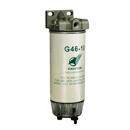Griffin G460-10 Spin-On Fuel Filter / Water Separator?Griffin G460-10 Spin-On Filter / Water Separator. The G460, with a flow rate of 122GPH, is a Griffin Spin-On Series filter. The G460 is 14.17" in height and 4.70" in depth. The G460 provides unsurpassed fuel filtration and water separation. The G460 uses genuine MICROBLOC® replacement elements. G series Spin-On filters feature a 7 port non-pump style head. Select a GP series for a unit with and integrated primer pump. G units come unassembled and complete with 7 port head, 5 plugs for unused ports, genuine MICROBLOC® G46-10 Micron Spin-On element, clear plastic water bowl and O-ring. Fuel ports are 3/8"-18 NPTF. All Griffin Spin-On Series Fuel Filter / Water Separators come with a one year warranty. Element life is not covered by this warranty and will vary upon your particular conditions and usage. Griffin filtration technology was developed from over 30 years of experience purifying petroleum-contaminated seawater. MICROBLOC® Multi-grade Filtration Media Elements have tested to be 99.8% effective in separating water from diesel and bio-diesel fuels and can remove solid contaminants as small as 2 microns in size. G46 elements are available in 2, 10 and 30 micron sizes. Diesel Filters Direct can also help you find the fittings you need to complete your installation like a pro. Fittings are sold separately.